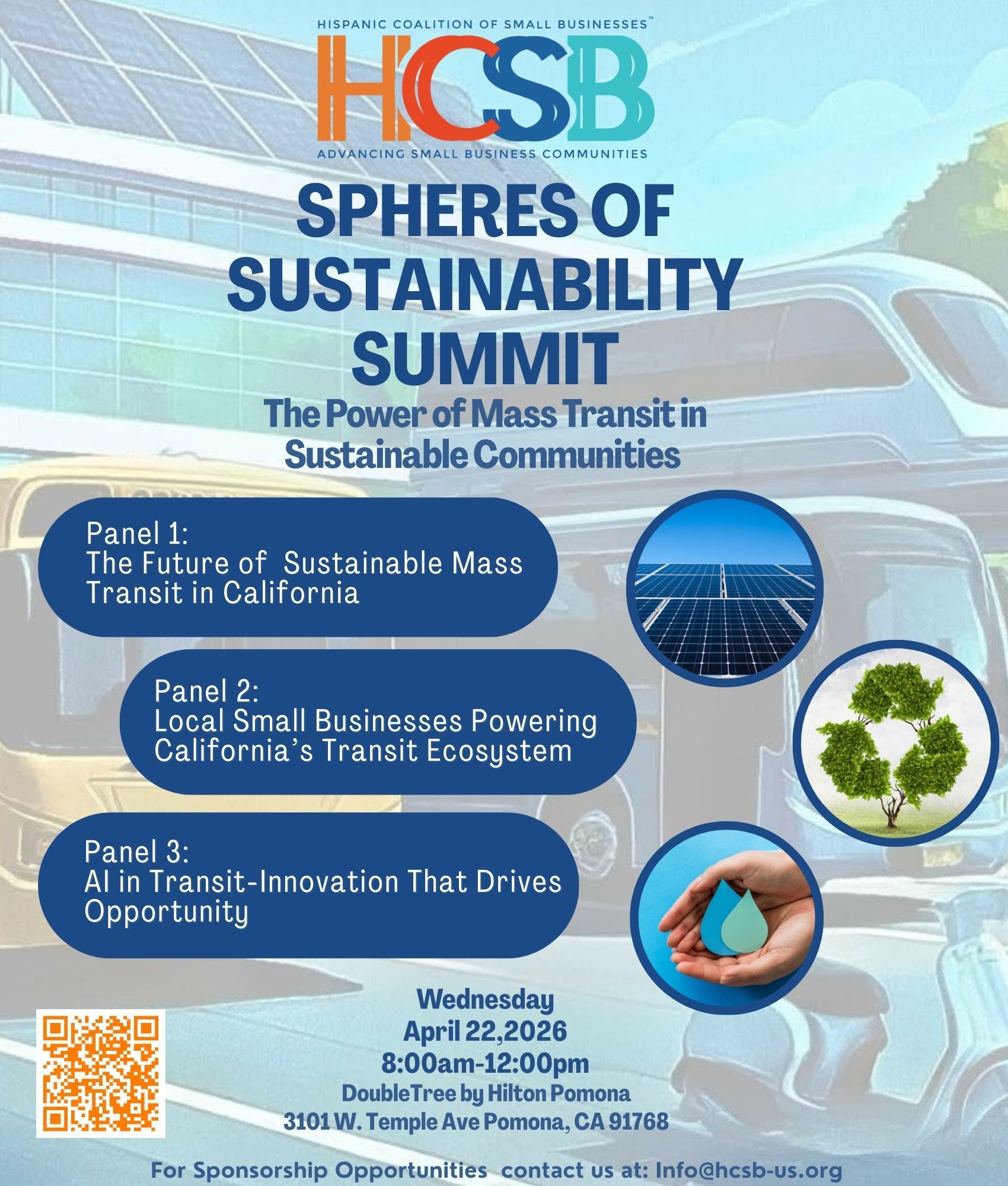 RIVERSIDE, Calif. — March 18, 2026 — The Hispanic Coalition of Small Businesses (HCSB) has named San Bernardino Valley College (SBVC) the recipient of the 2026 HCSB Spheres of Sustainability Visionary Award, recognizing the college’s leadership in preparing people and communities for a more sustainable future. SBVC will be honored at the 2026 HCSB Spheres of Sustainability Summit on April 22, 2026, from 8 a.m. to noon at the DoubleTree by Hilton Pomona.